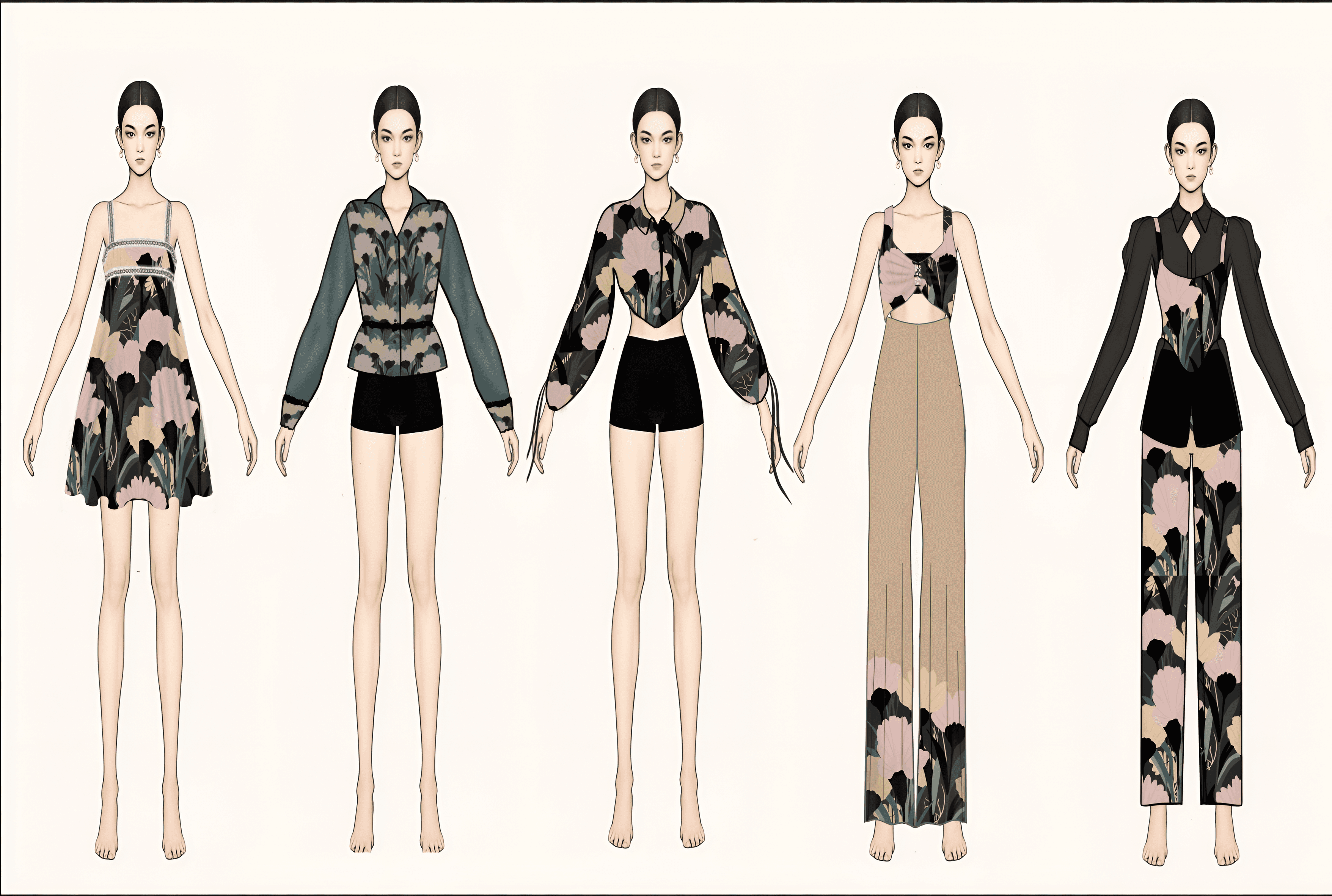 PRINT DESIGN FOR CLOTHES IS THE PROCESS OF CREATING GRAPHIC PATTERNS, IMAGES, OR ARTWORK THAT ARE APPLIED TO FABRIC TO DECORATE OR ENHANCE A GARMENT. IT FOCUSES ON HOW A DESIGN LOOKS ON THE MATERIAL AND HOW IT REPEATS, SCALES, AND POSITIONS ON THE CLOTHING.