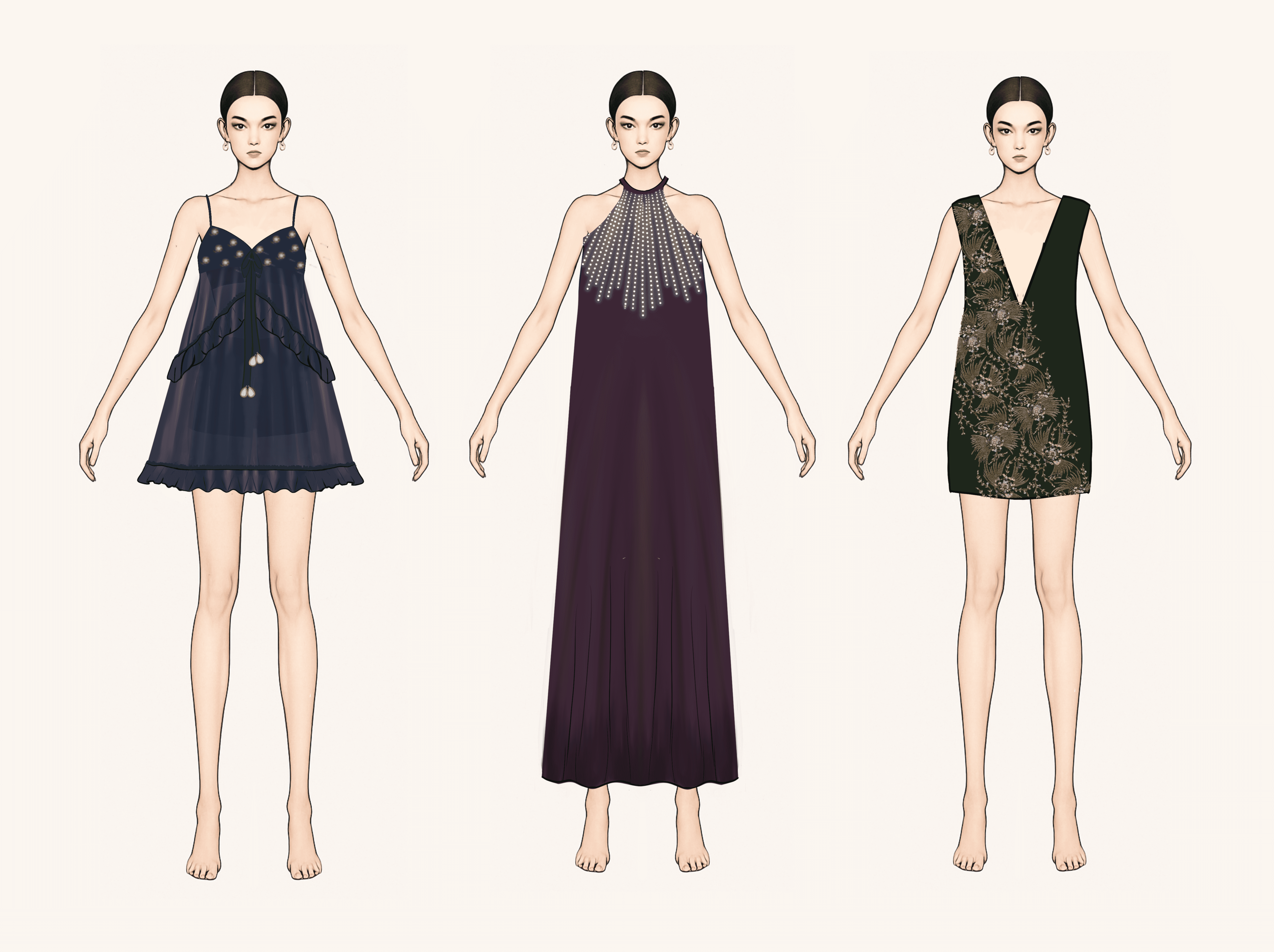 A tech pack includes detailed flat sketches of the garment (front, back, and sometimes side views) that clearly show the shape, proportions, and design features. It contains precise measurements for each size, known as a size spec or measurement chart, which defines how the garment should fit and how it is graded between sizes.